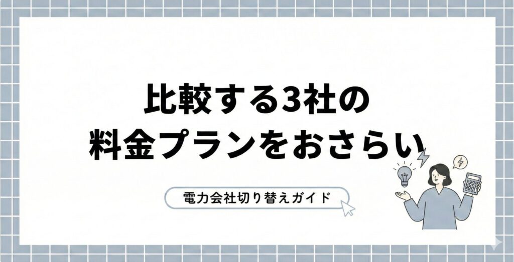 まずは、今回比較する3社の料金プラン(中部電力エリア・30A契約)を簡単におさらいしましょう。