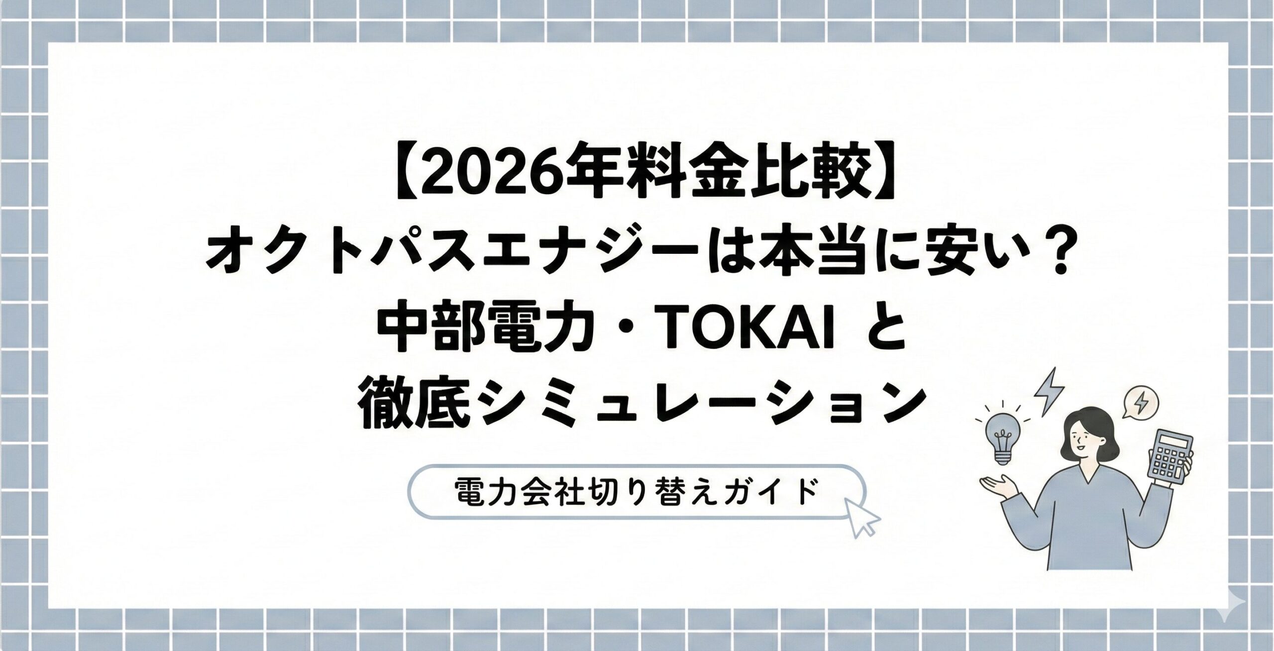 僕が実際に契約してきた「中部電力」「TOKAI」「オクトパスエナジー」の3社について、2026年1月時点の最新料金プランを基に、あなたの家の電気代がどうなるか、一緒に見ていきましょう。