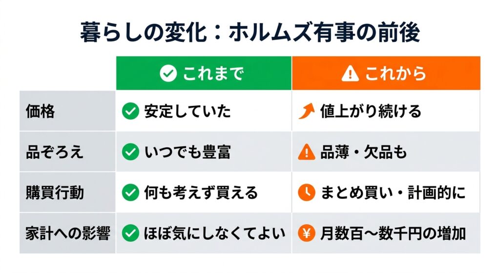 ・パニック買いより「今の消耗品の棚卸し」と「2〜3ヶ月分の合理的なストック」が現実的な対策